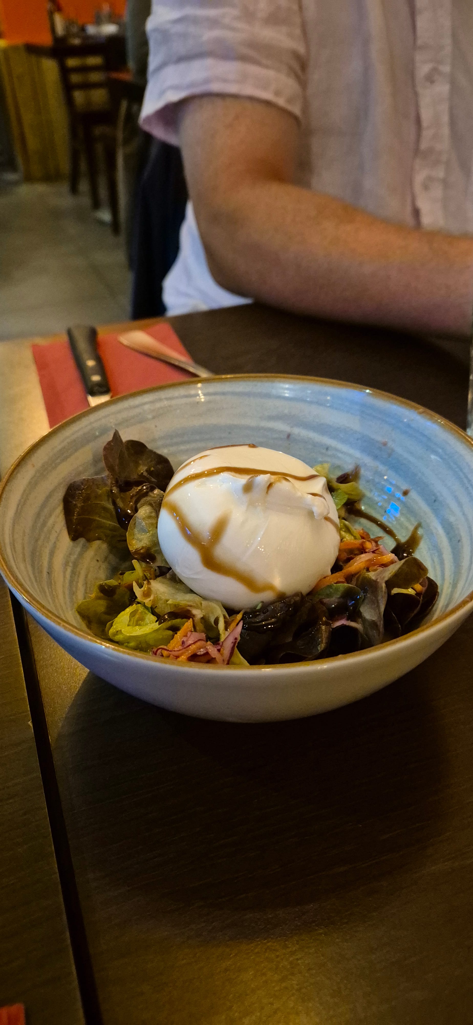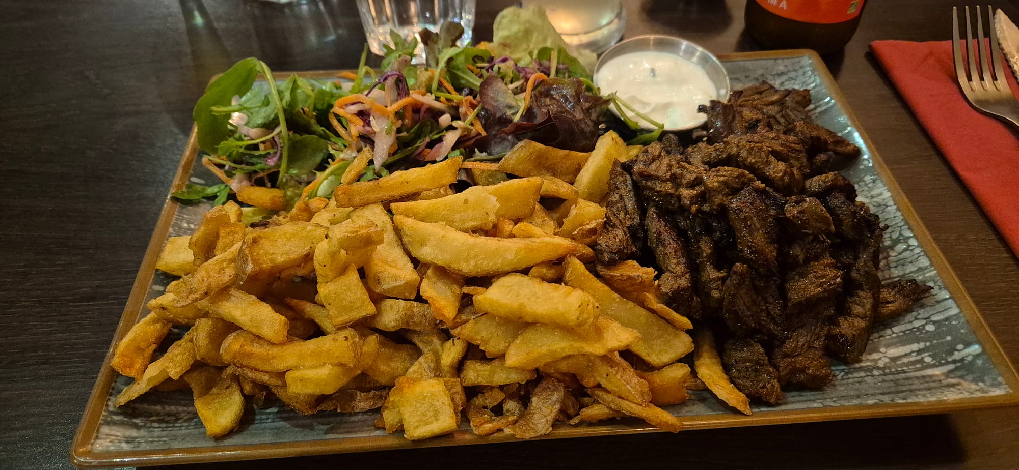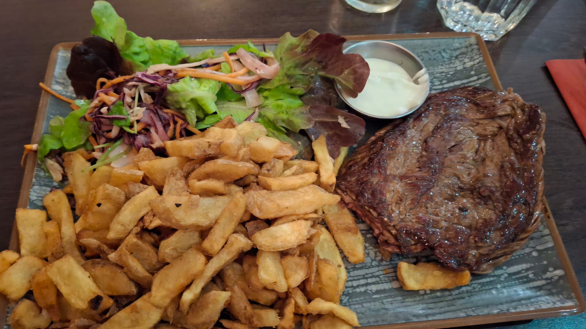 Heute sind wir in der Burgerbude hängen geblieben. Da es anfing zu regnen, war die Lust auf eine lange Suche eines geeigneten Restaurants gering. Auf jeden Fall war das Essen sehr lecker. Vorspeise Burrata mit Pesto geteilt (Charlie und Astrid), Hauptgericht Bavette an Pommes und Salat ( Kerstin und Charlie) sowie Geschnetzeltes Thailändisch (Astrid). Da fehlte allerdings Thailändisch 😂. Warum das so hiess, erschliesst sich mir nicht. Sehr müde sind wir zurück un unsere neue Unterkunft und jetzt sitzen wir auf dem Sofa. Alle platt und hundemüde. Morgen dann mehr aus NANTES, wo es aktuell regnet🤨. Gute Nacht!