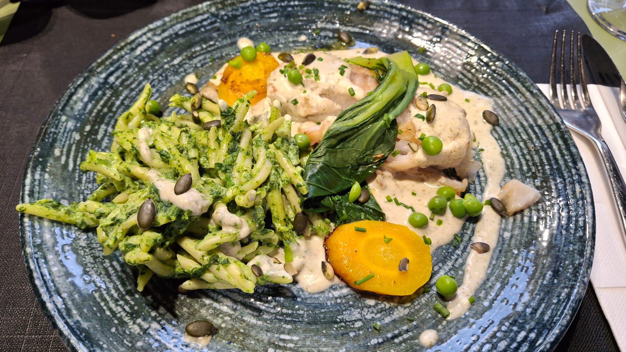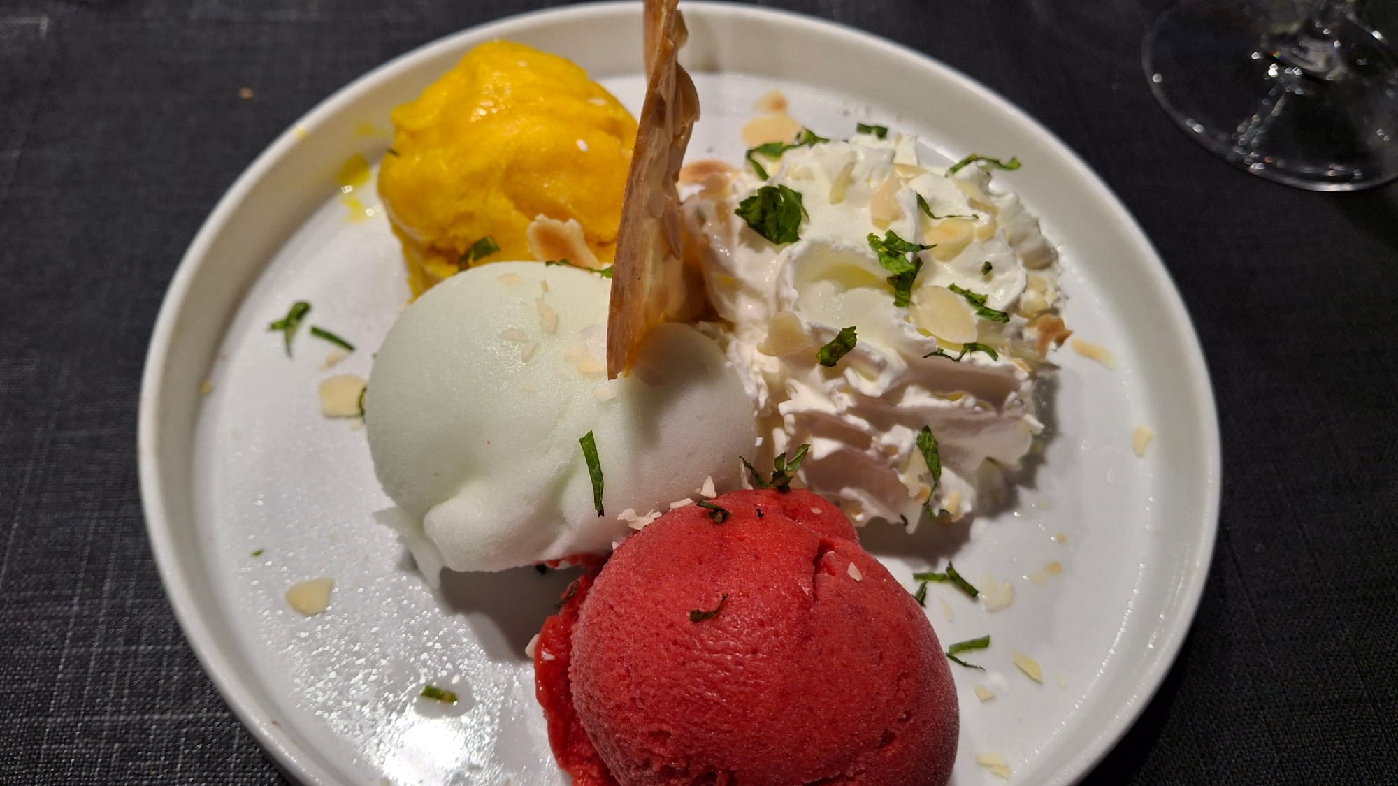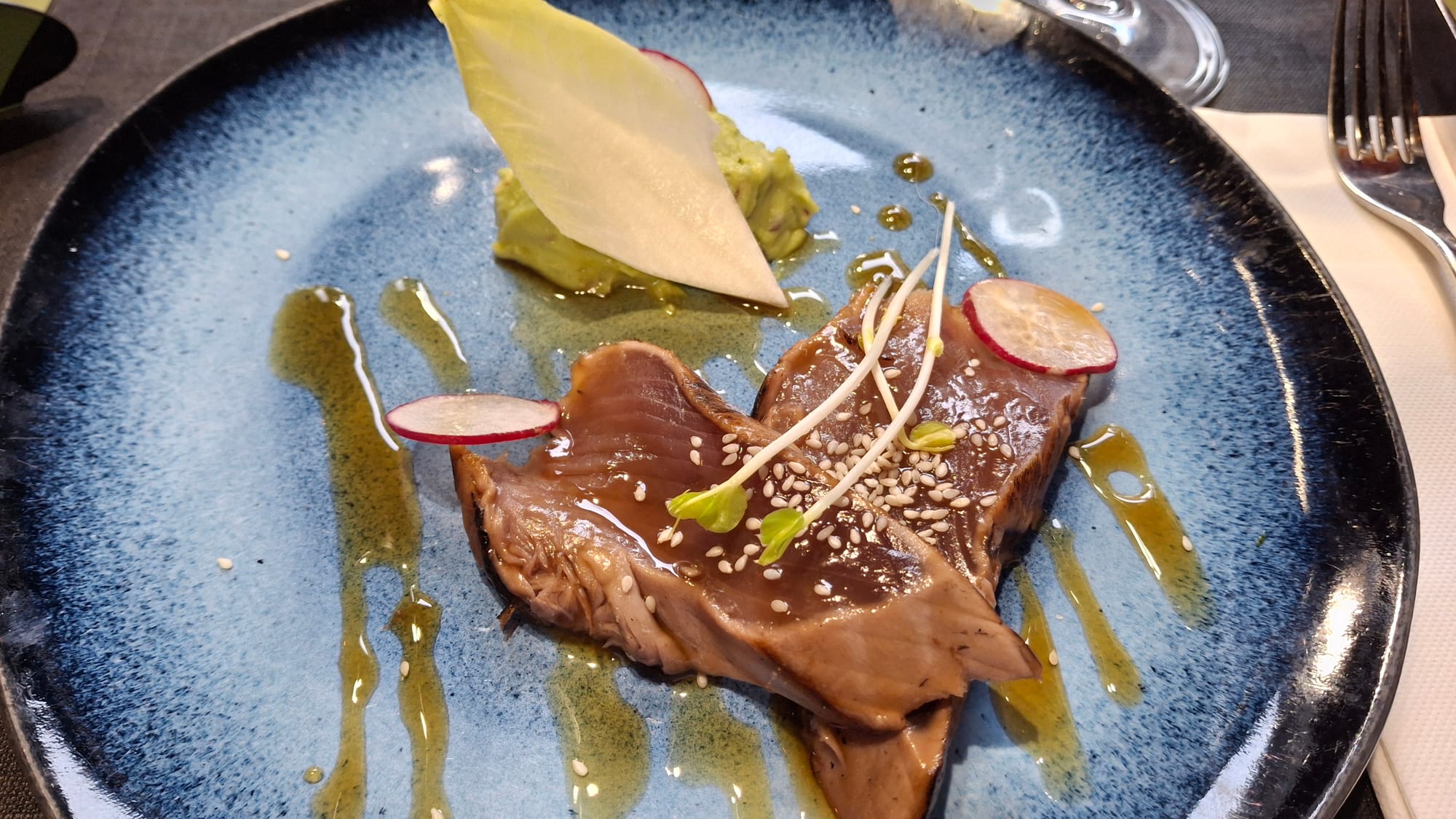 Tuna tataki, cod and a sorbet palette
