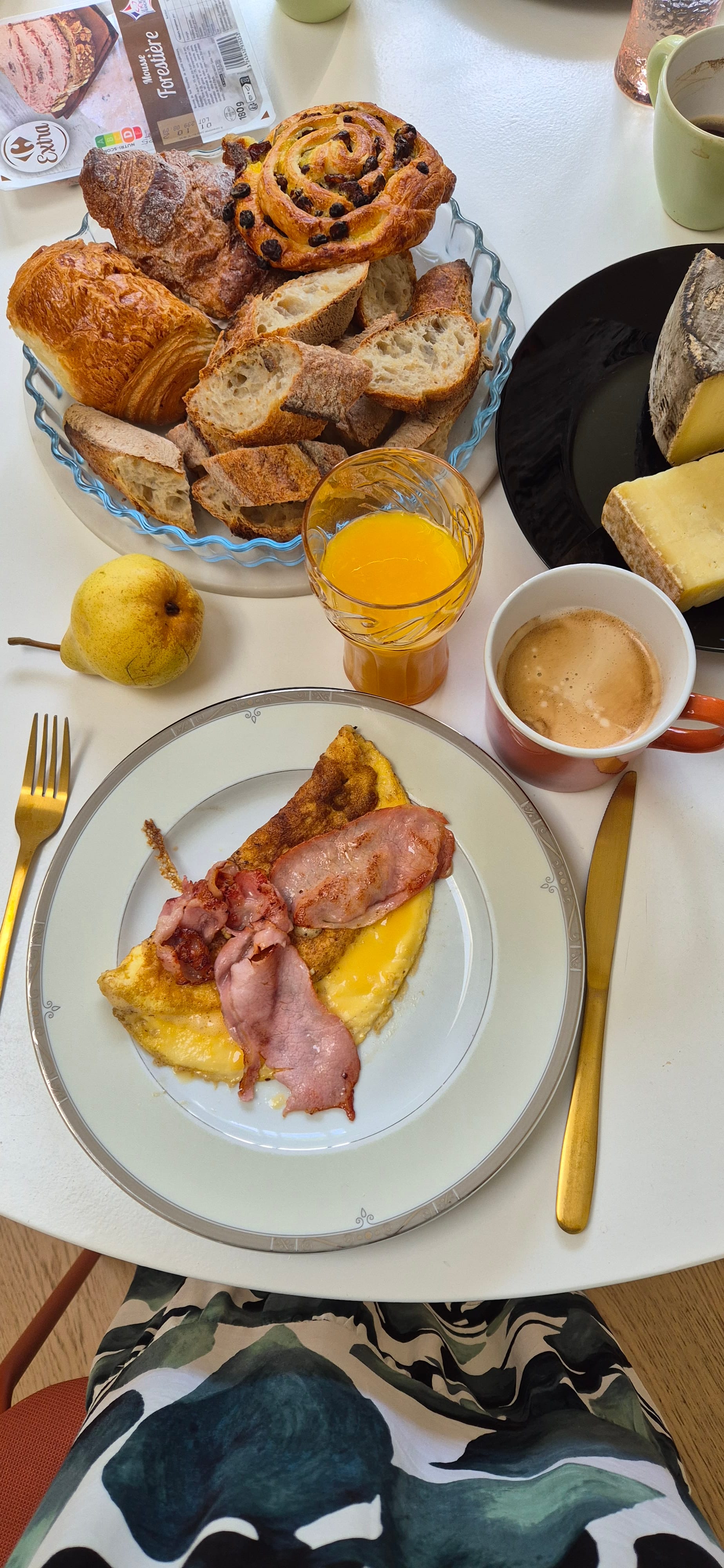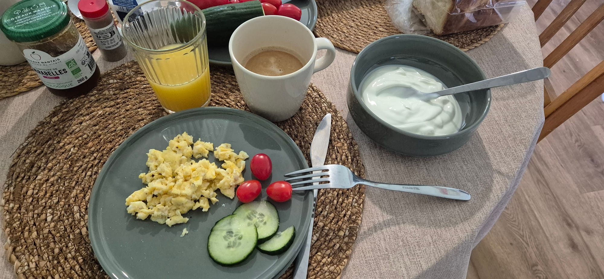 In Tours hatte er sogar Eier erbeutet und wir durften uns ein Spiegelei wünschen. Anzahl verfügbarer Bratpfannen = 5. Davon Induktionsherd geeignet = 0. Wir nehmen den einzig möglichen Kochtopf (siehe oben).