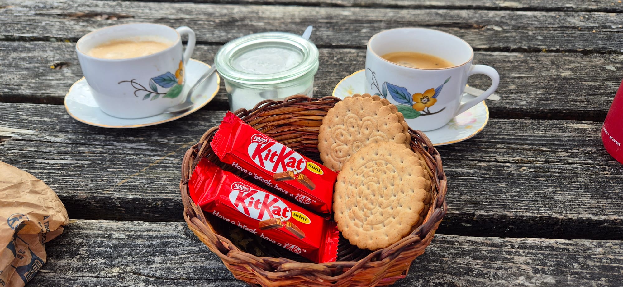 Neben Kerstins fröhlichem Liedchen ist auch Ruhe eingekehrt. Wir fahren einen sehr schönen Abschnitt an der Cher (Strong enough - I don't need your sympathy, there is nothing you could say or do for me...") entlang. Wir hängen unseren Gedanken nach. Die heutige Strecke ist kürzer als geplant. Das lässt hoffen. Es gibt sogar eine sehr ausgiebige 2. Frühstückspause mit leckeren Baguettes (Käse, Salami und Gurke). Liebevoll und gedankenverloren mit Butter zuvor bestrichen. Und gerade sitzen wir bei einer Kaffepause. Es geht uns gut.