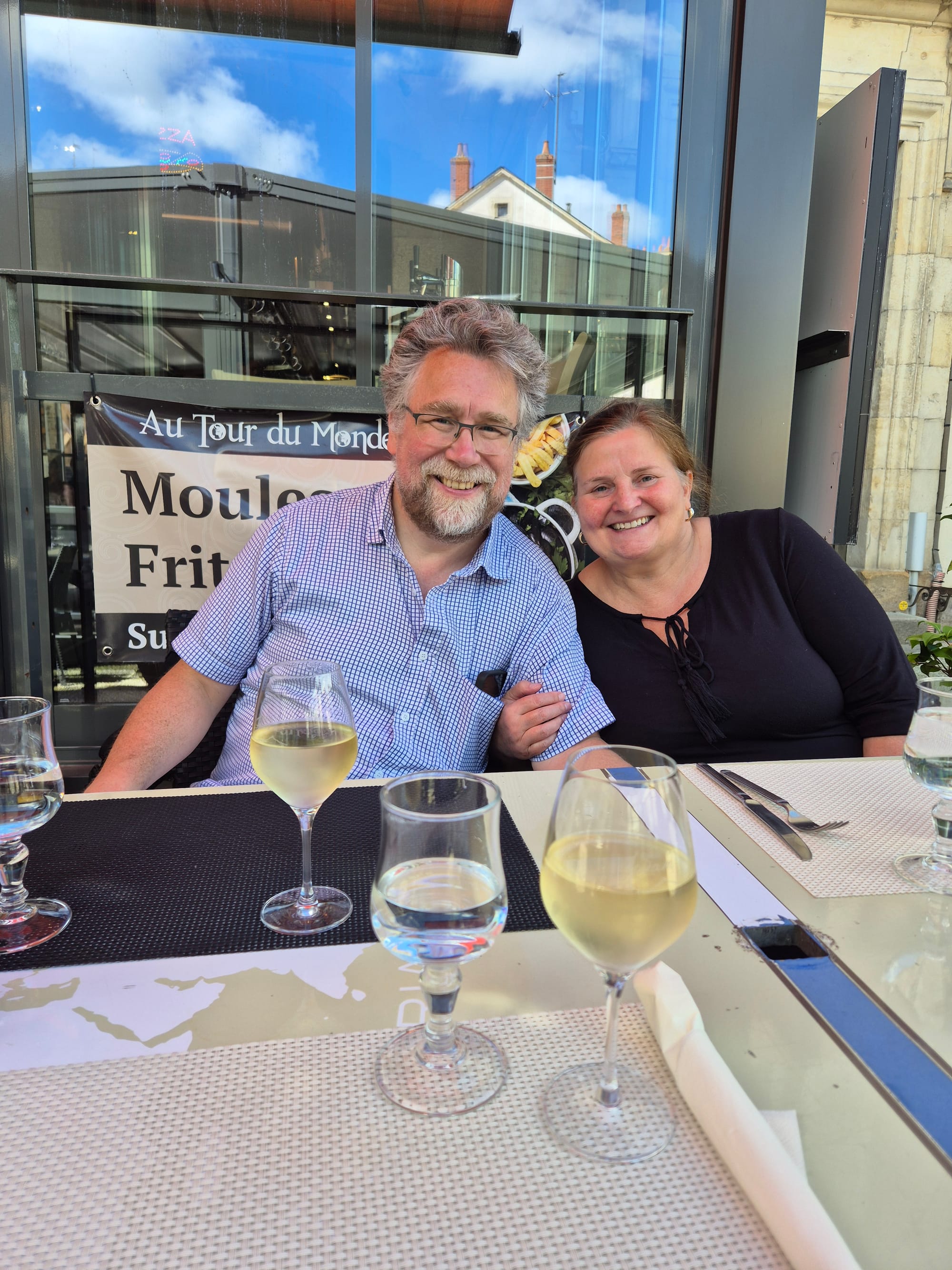 Als dann auch noch die Sonne zurückkehrte, war es Zeit, einen ersten Blick auf die Loire zu werfen und die Stadt zu erkunden. Wie die glücklichen Gesichter zeigen, sind wir im Urlaub angekommen. Morgen geht's los!