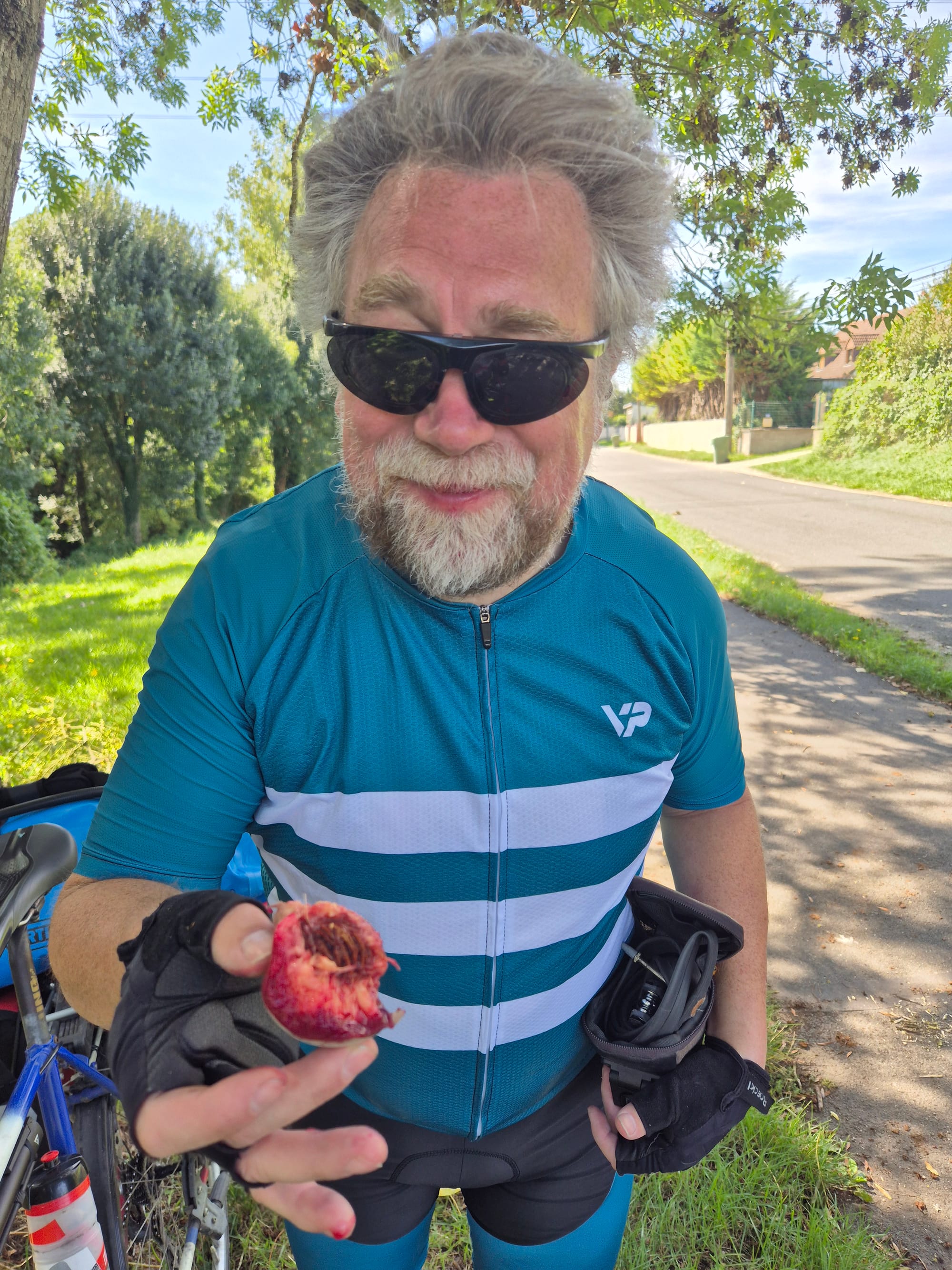 Bisschen pelzig, aber saftig und . lecker. Mit frischer Energie geht's weiter. Ca. 27 km noch bis Blois, d. h. wenn der Reiseleiter nicht wieder ein paar Kilometerchen unterschlagen hat...