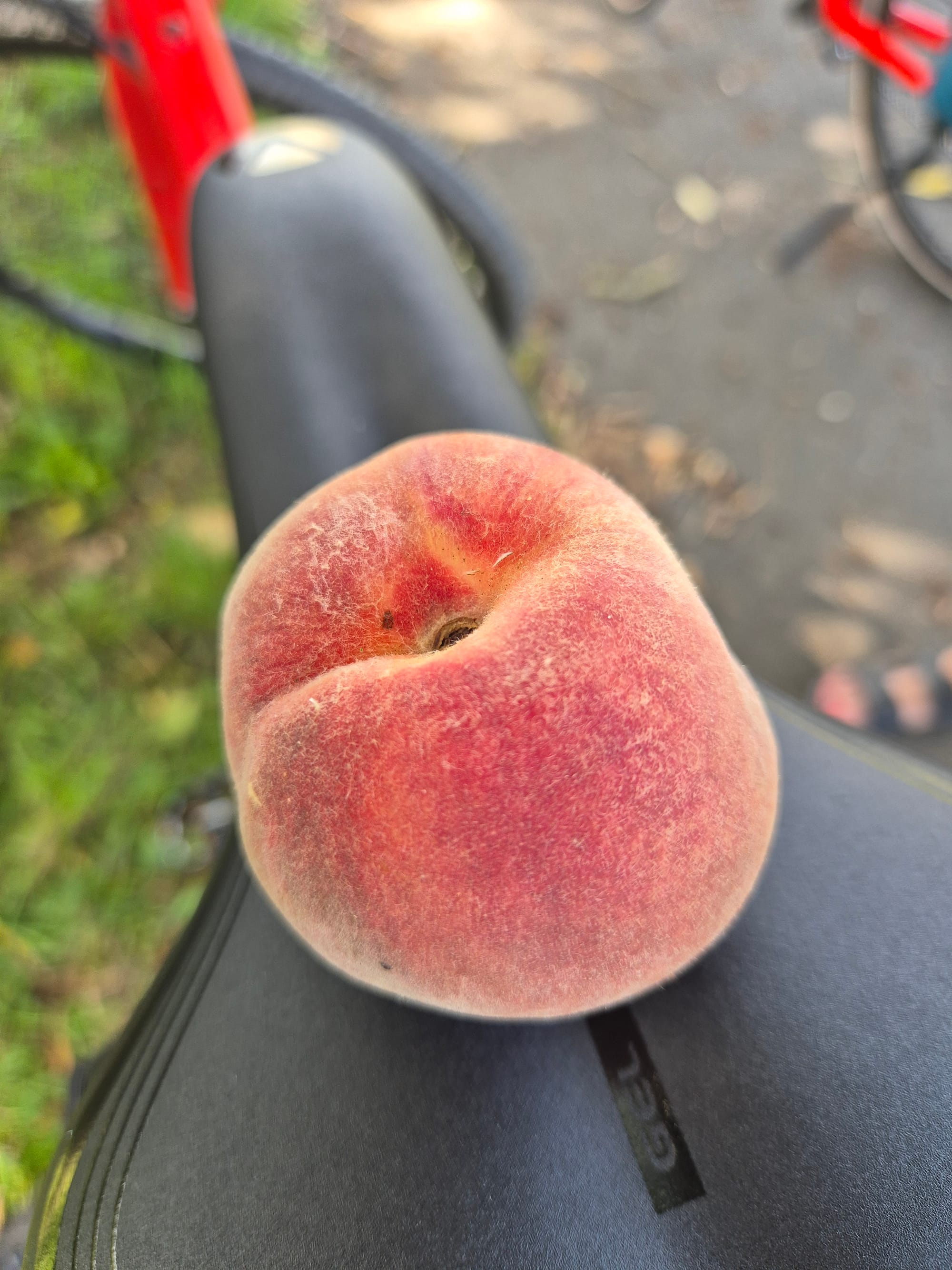 Gerade haben wir beschlossen, unseren Hintern eine kleine Pause zu gönnen, da lacht mich eine Kiste Pfrsiche an. Selbstbedienung Nehmen wir gern!
